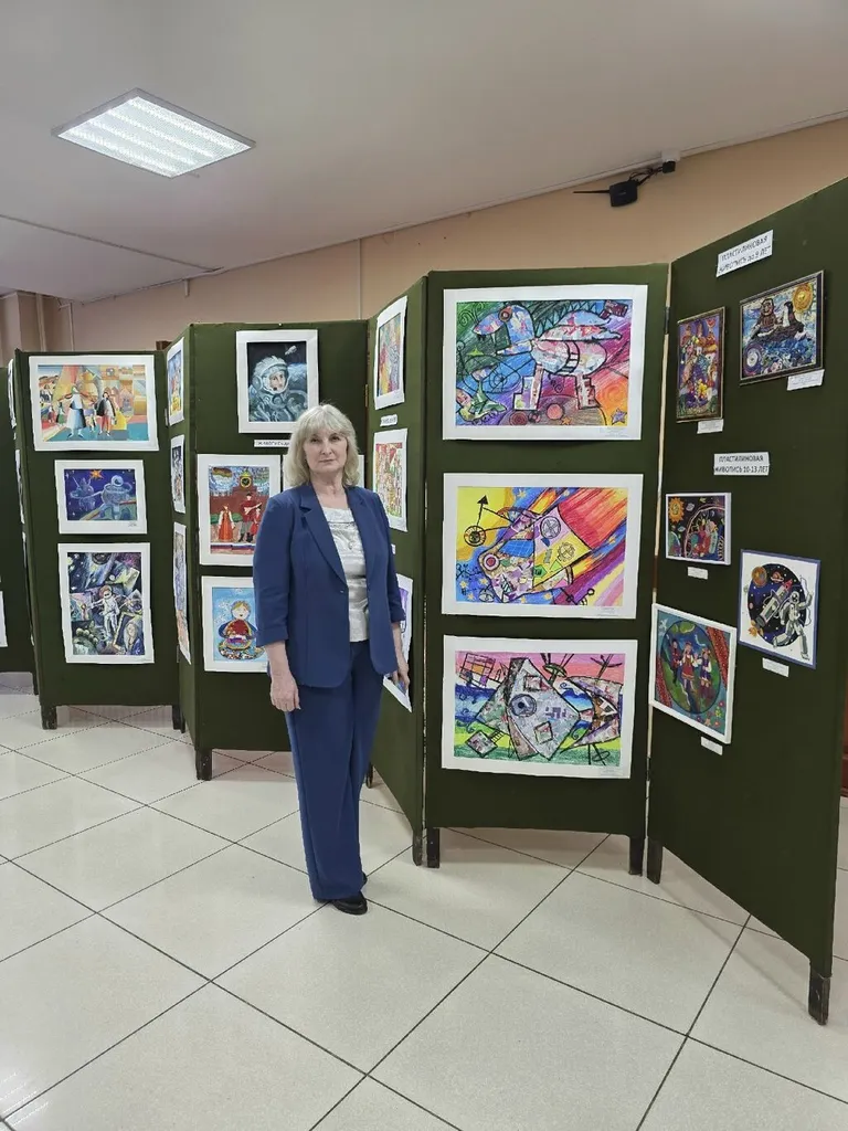 В номинации "Изобразительное творчество" от детской художественной школы N°12 было представлено 6 работ: пять работ по тематике "65 лет первому полёту человека в космос" и одна работа в тематике "Дружба народов России".