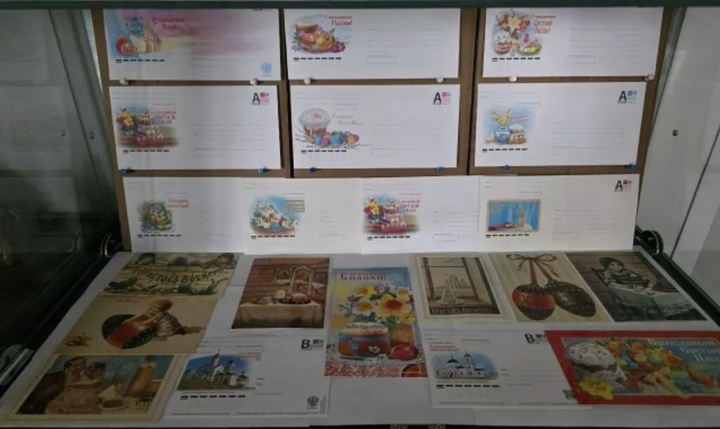 Ко Дню Пасхи преподаватель Борис Михайлович Гулевский оформил выставку почтовых конвертов и открыток.