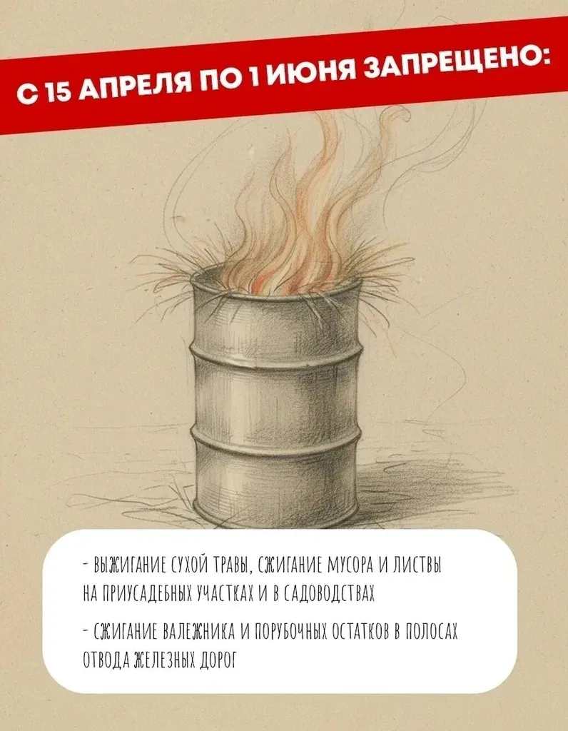 С 15 апреля по 1 июня 2026 года в Кузбассе действует особый противопожарный режим.